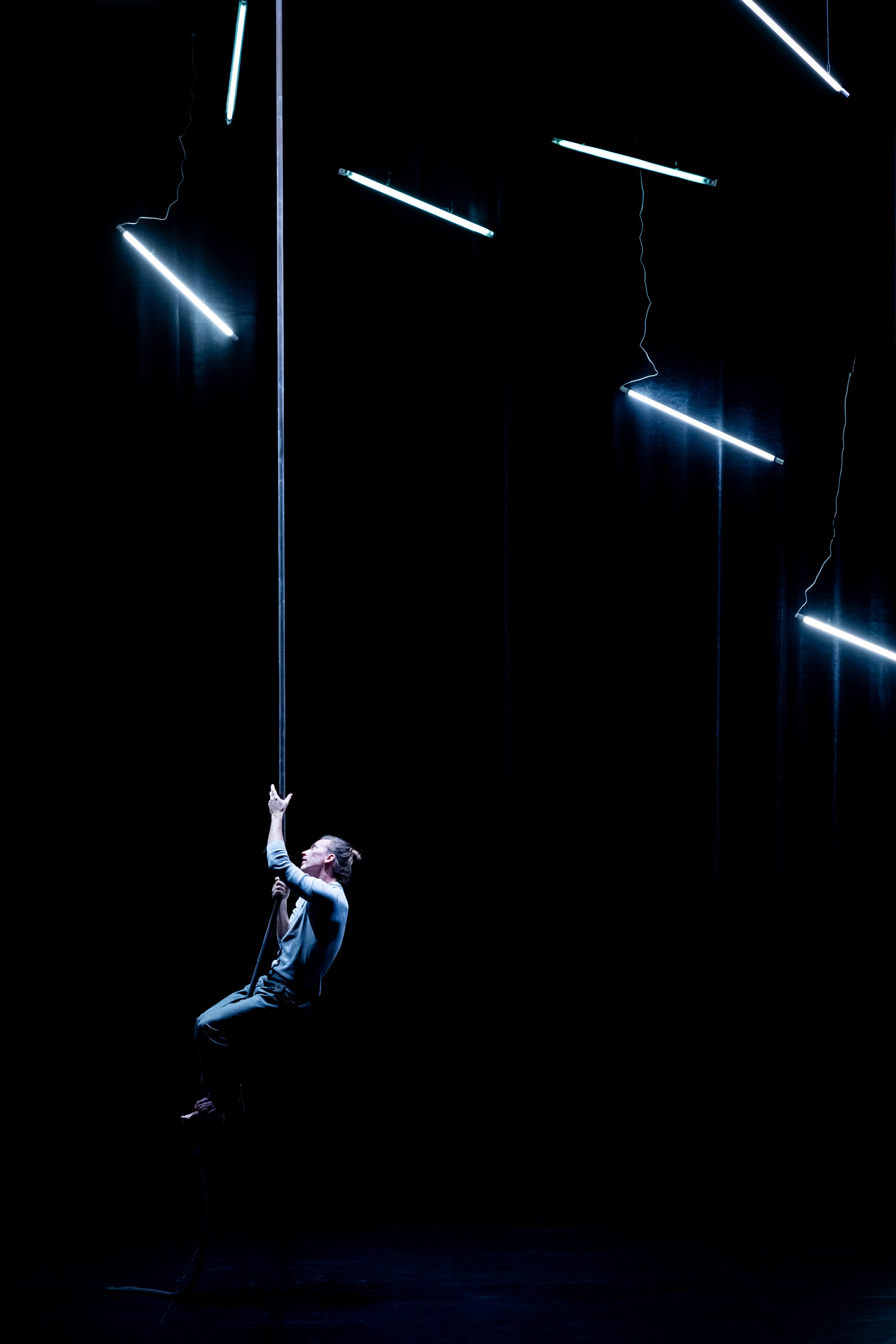 The project's theme is embodied by the inherent physicality of aerial rope. By emphasising the tempo of movements, and intentionally changing it in surprising ways, the audience will experience how relative their perception of time can be.
